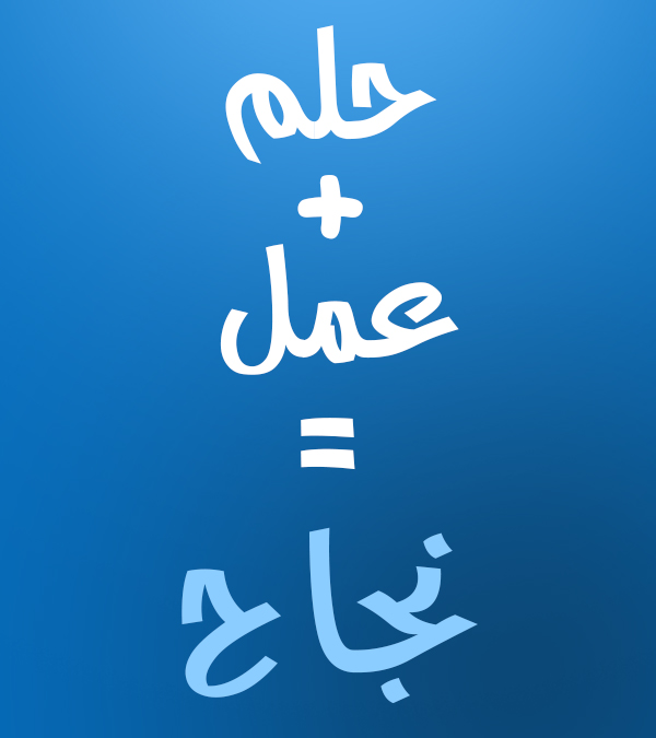 | الحلم + العمل = النجاح أحلم وتخيل وأبدع في أحلامك ولكن لا تتوقف عند هذا الحد فتعيش حياتك كلها في الأحلام .. أتبع الحلم بالعمل حدد الهدف ثم حدد وسائل تحديد الهدف .. أعمل وأجتهد وخطط ونسف لتحقيق هذه الأهداف ... أشتعل بجد وبكد ... ها أنت تقترب .. هناك صعوبات وتحديات ولكن لا وجود للمستحيل ... لا تتوقف في منتصف الطري .. أكمل ما بدأت .. ثابر .. وتوكل علي الله ... جمع المشكلات وحددها ... أبحث وأسأل وأستعن بأصحاب الخبرات ... فتت المشاكل والعقد .. كن مرن ومبدع في حل المشكلات ... مبروووك فقد حققت الآن الحلم