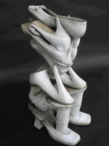 مجموعة من الأحذية تم رصها بشكل معين لتخرج لنا شكل تمثال .