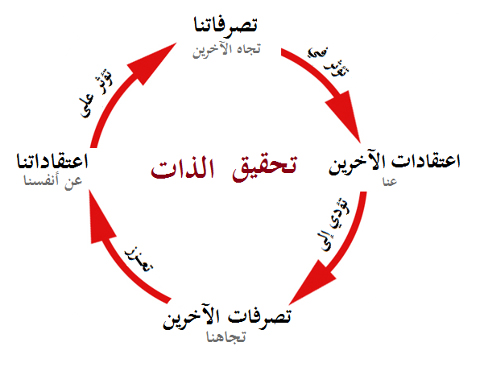 تصرفاتنا تجاه الأخرين تؤثر في اعتقاد الأخرين عنا تؤدي إلي تصرفات الأخرين تجاهنا تعزز اعتقاداتنا عن أنفسنا تؤثر علي تصرفاتنا تجاه الأخرين ... هذه دائرة تحقيق الذات .