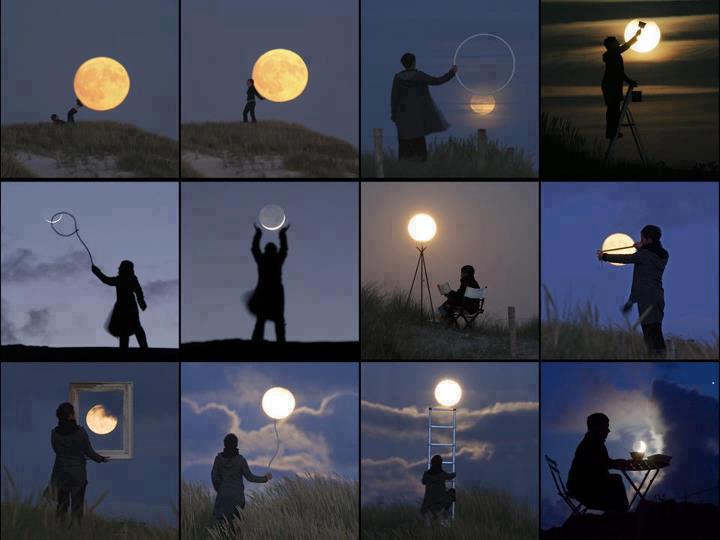 وما أجمل إبداع هذا المصور الذي أستخدم العديد من الأفكار ليبرز لنا جمال وروعة القمر ... إبداع حقيقي ..