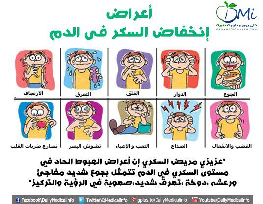 أعراض إنخفاض السكر في الدم :