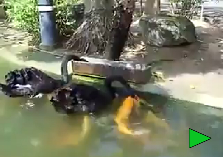 | سبحان الله طيور تطعم الأسماك. كثيراً رأينا البجع الأبيض ... ولكن هل رايت من قبل البجع الأسود ... والجميل أنه يأخذ مناكله ويطعم الأسماك التي تعيش معه في البحيرة .