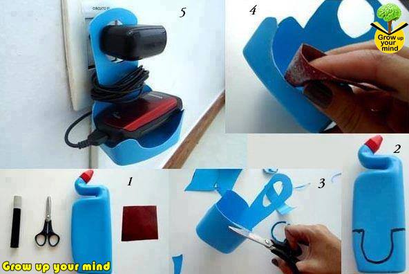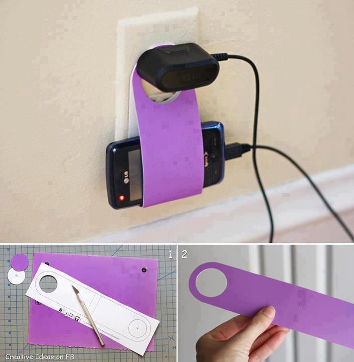 | فكرة لطيفة لصناعة حامل للمبايل عند وضعة للشحن .. فبدلاً من وضعه علي الأرض وقد يتعرض للدهس أو الخبط .. فمن السهل جداً أن نقوم بصناعة هذا الحامل كما هو موضح في الصورة الأولي ..أيظاً قد نجعل الأمر أكثر تعقيد بصناعة الحامل من البلاستك كما هو موضح في الصورة الثانية . أفكار عملية لا تكلف شيء وتجعل الحياة أسهل .