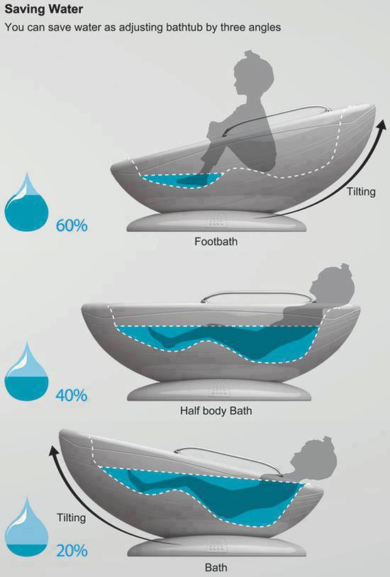 فكرة جميلة لبانيو موفر للماء ... حيث أنه بقاعدة متحركة تتيح لنا تركيز الماء في جزء معين حسب احتياج الإستخدام .