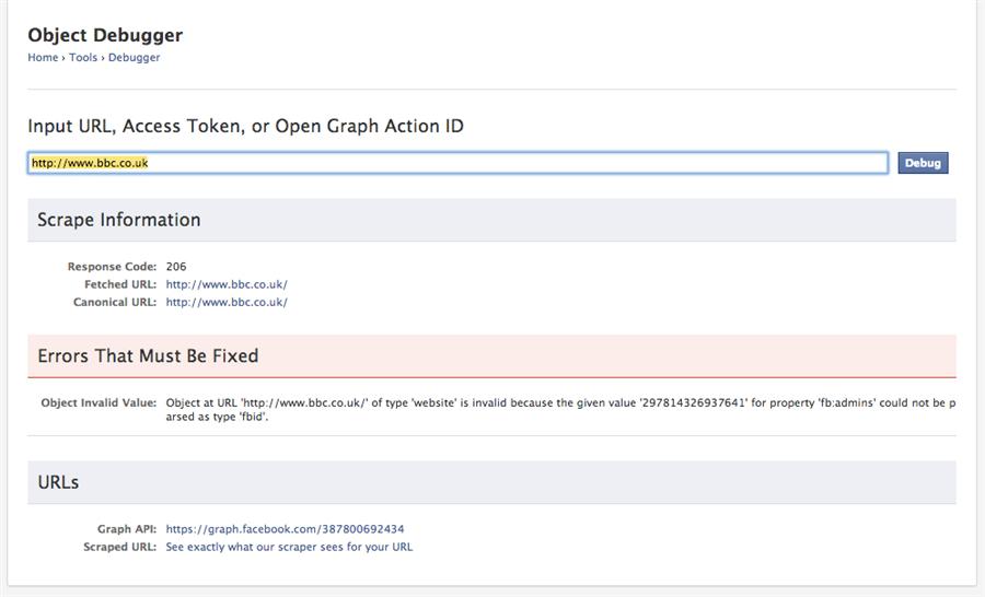 وأيظاً من ميزات صفحة الدبجر أنها تكشف لك عن الأخطاء في صفحتة بالنسبة للتاجات الخاصة بالفيس بوك