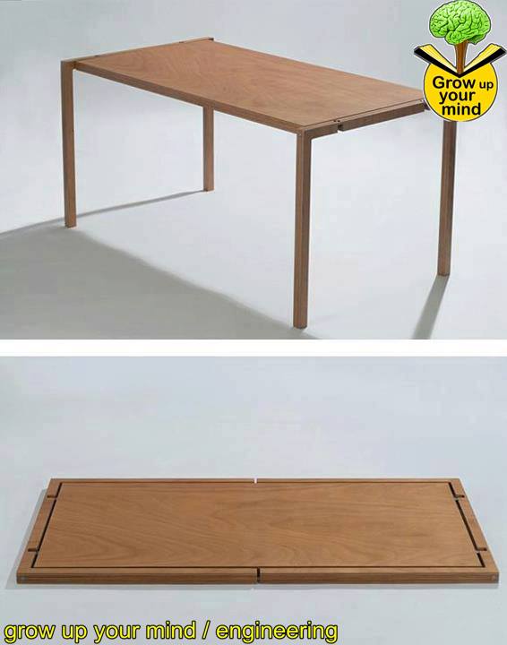 فكرة جميلة وعبقرية لتصميم طاولة قابلة الطي ... تصميم جميل وفي نفس الوقت عملية لتوفير المساحة.