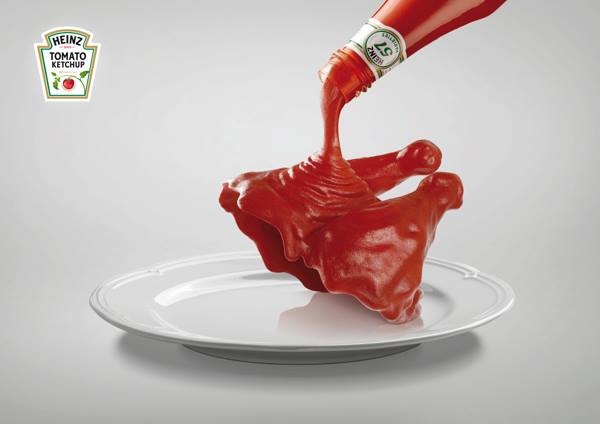 فكرة جميلة لشركة هاينز للإعلان عن منتج الكاتشب حيث يخيل أن الدجاجة شفافة وعندما يضع عليها الكاتشب تبدأ في الظهور كأنه يريد أن يقول أن الدجاجة بدون الكاتشب ليس لها وجود فالطعم الحقيقي يظهر عندما يضاف الكاتشب إلي الدجاجة.