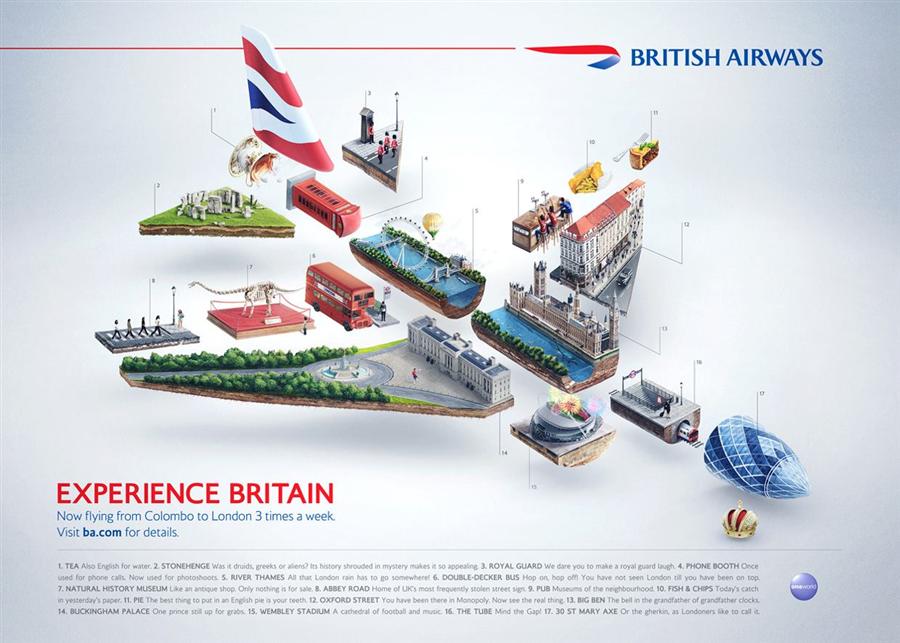 وذلك برسم شكل الطائرة وقد تقسمت إلي مجموعة من المعالم السياحية الموجدة في لندن.