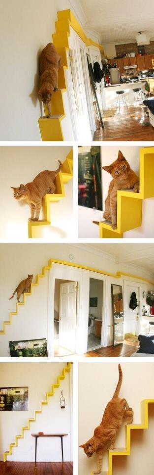 فكرة لطيفة لمحبي تربية القطط ... سلم صغير معلق علي الحائط يعطي شكل ديكور جميل وفي نفس الوقت هو مكان مناسب للقطط للتسلق والنط فالقطط تحب كثيراً الصعود علي الأماكن المرتفعة ....