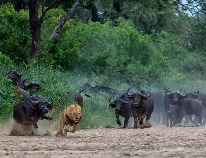 فنحن دائماً نشاهد الأسد في موضع الهجوم وباقي الحيوانات في وضعيت الفرار وذلك راجع لقوة الأسد وشراسته وشجاعته ولكن عندما يتوحد القطيع ويتحد ويقف بتحدي في وجه الاسد فلا يجد الاسد امامه سبيل سوي الفرار ...