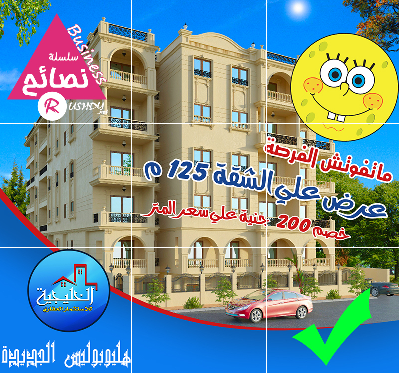 3- الكلام علي الصور المفروض إننا بنقسم الصورة 6 مستطيلات والكلام ما يكونش داخل في أكثر من ثلاثة مستطيلات لأن أكثر من كده هيخلي تكلفة الأعلان أغلي.