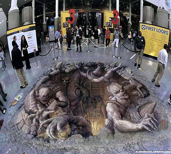 الرسم علي الأسفل واللعب بالأبعاد لتشعر أنه حقيقي وقد يخدع البعض ويظن فعلاً أنه حقيقي !!
